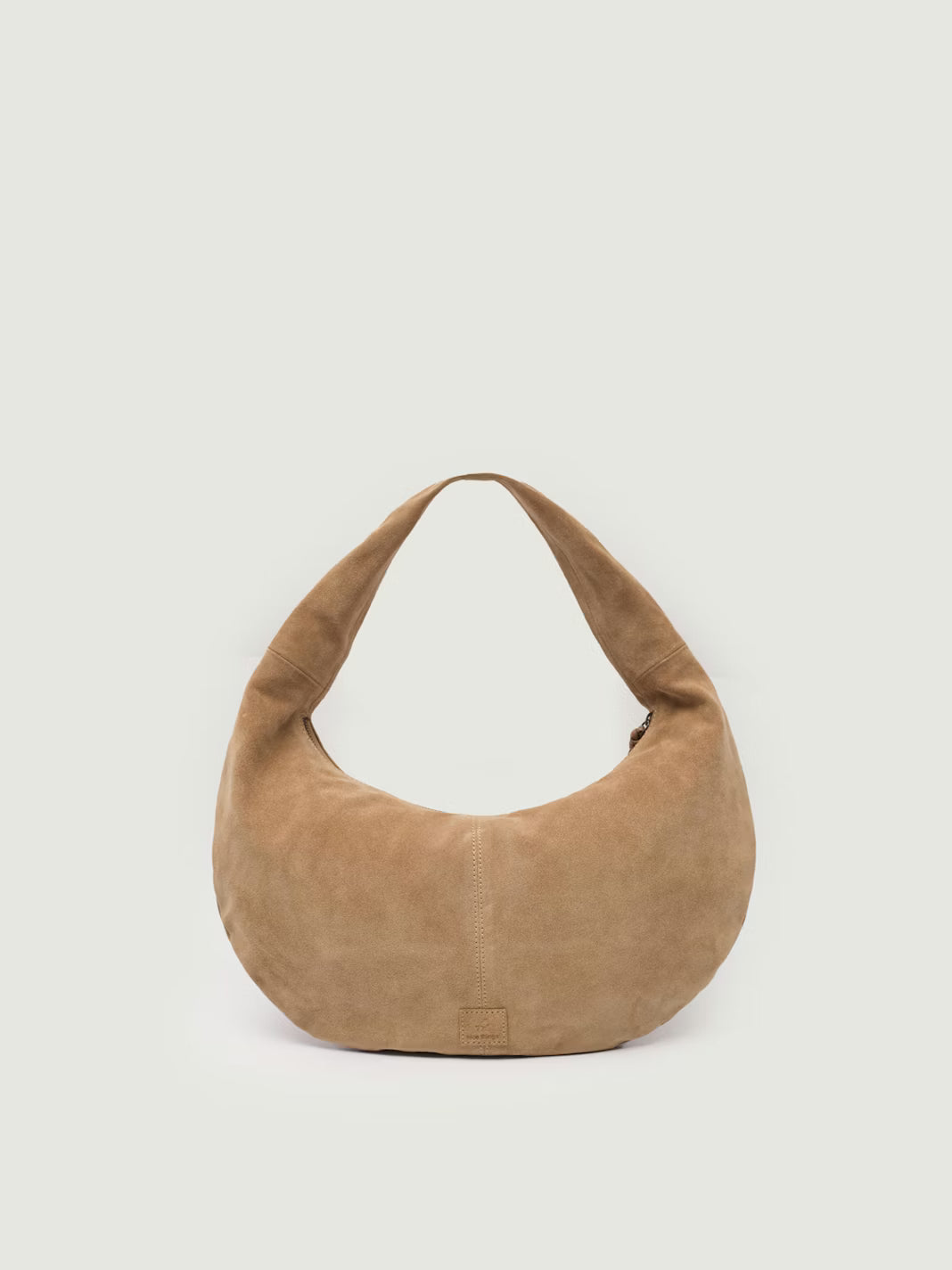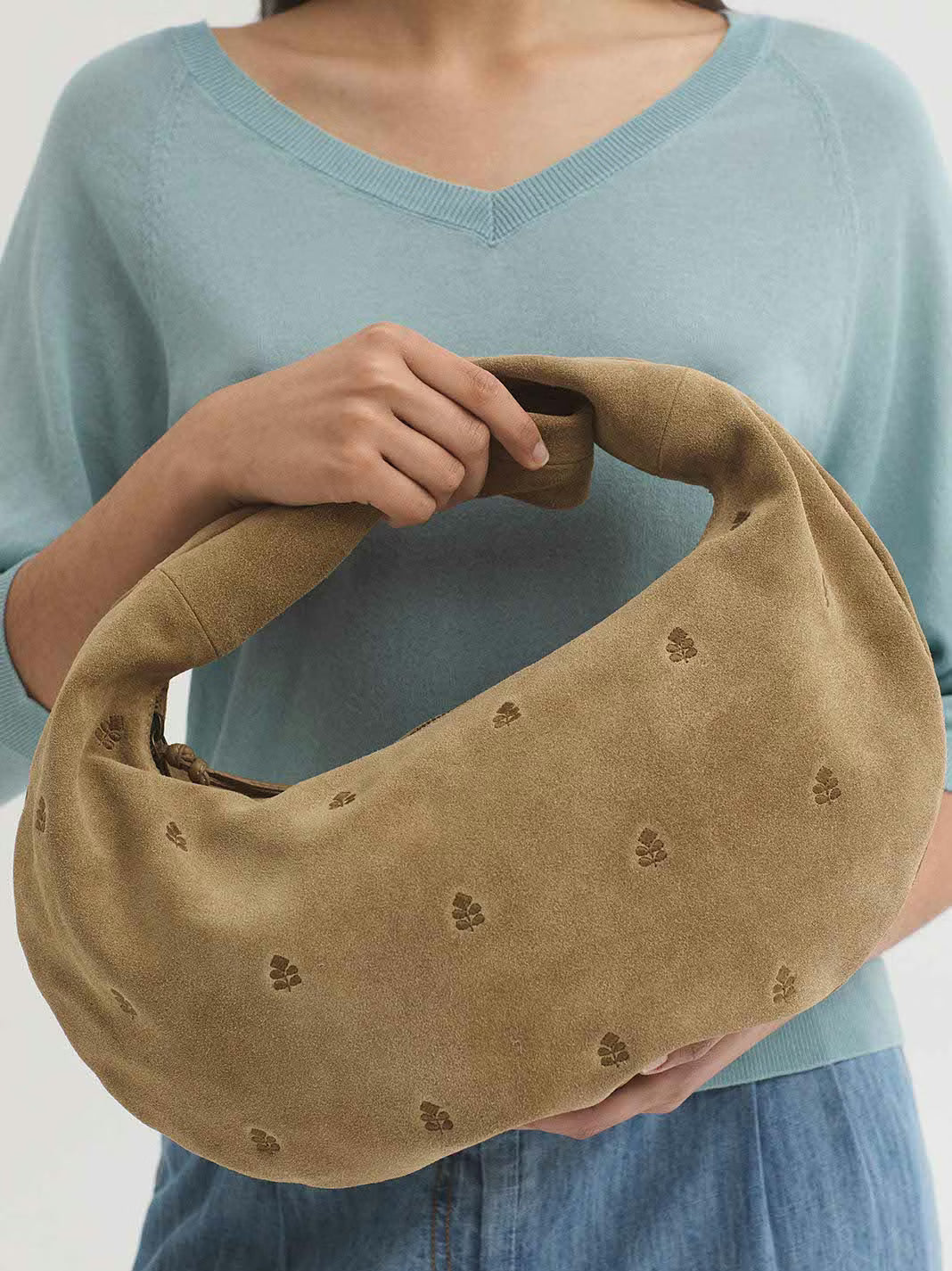 Leather shoulder bag with embroidered detail on one side. Zip closure. Inside pocket. Debossed logo. Bag that nestles comfortably on the shoulder. Measurements: 25 cm tall x 47 cm wide.