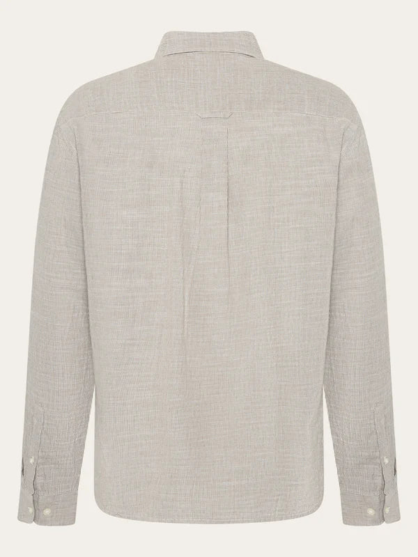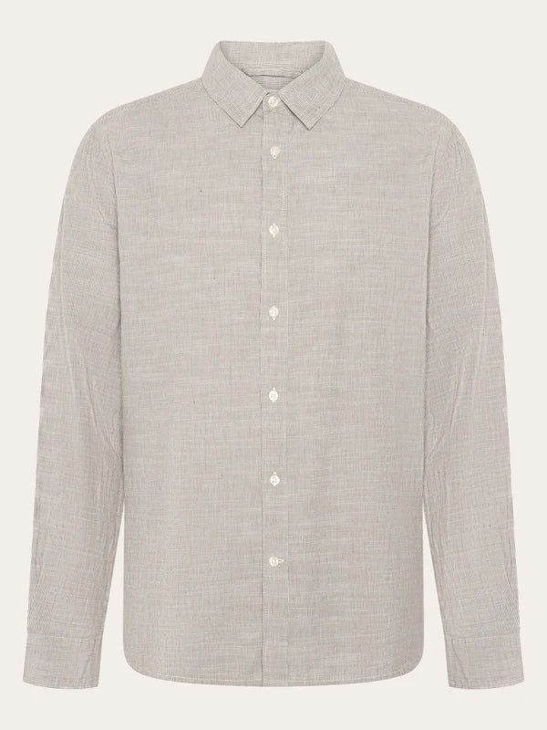 This long-sleeved shirt is made from lightweight organic cotton, offering a soft and breathable feel for all-day comfort. Designed in a regular fit, it provides a timeless silhouette that balances ease and structure. The fine woven texture adds subtle depth, while the button-down front, classic collar, and adjustable cuffs ensure a refined finish. Ideal for both casual and smart occasions, this shirt pairs effortlessly with trousers or denim for a versatile, polished look