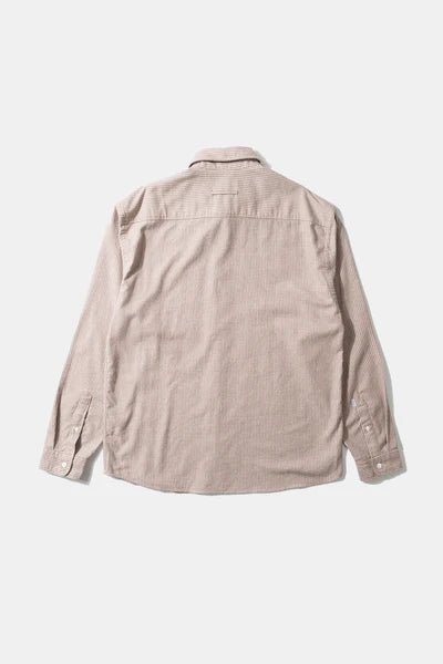 Brushed flannel shirt with a striped design in a melange yarn. Cut-away neck and long sleeves with buttoned cuffs. Large chest pocket. Button-front closure. Decorative tag at the lower left corner with a spy motif. Crafted from 100% cotton. Made in Portugal.