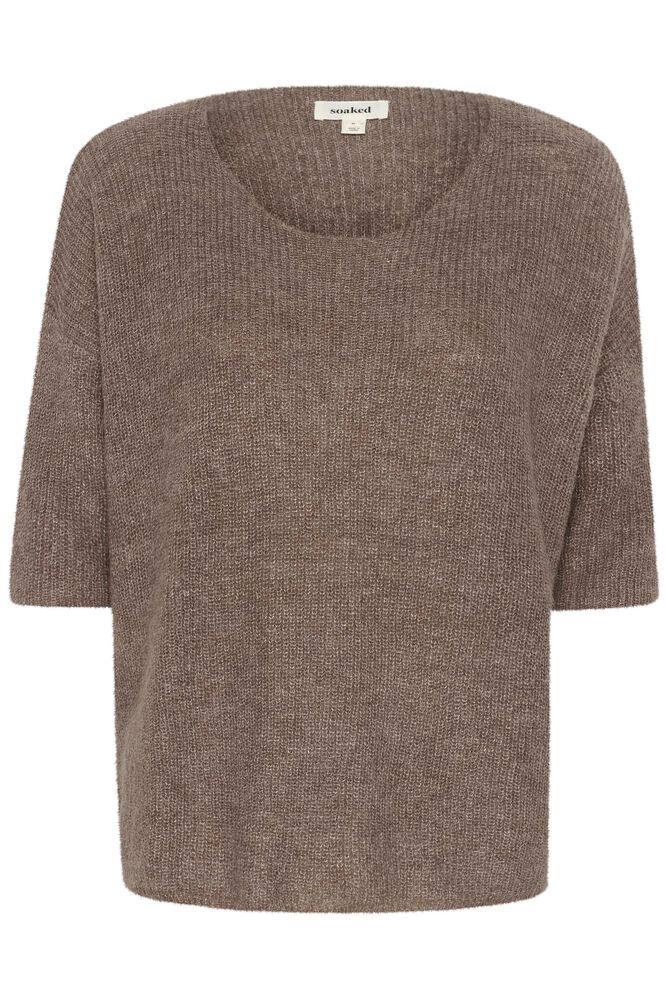 Soft knit in a warm taupe shade with a round neckline and three-quarter sleeves. The relaxed fit and textured finish create an effortless yet polished look – ideal for everyday comfort and style.
