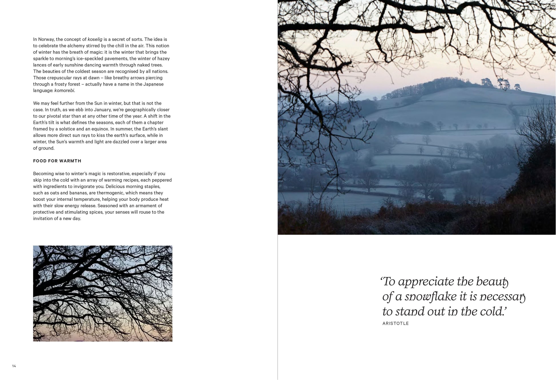 Winter Wellness empowers us with inspiring recipes and simple tips to support our immune system and mental health through the colder months. There are broths and soups, such as a dandelion and burdock ramen and parsnip toddy, easy-to-digest one-dish dinners like carrot miso mac, energising breakfasts such as banana bread blinis and tahini porridge, teas and tonics like homemade bitters and a night-time nutmeg nog, healthy treats like miso and pear mousse and orange and ginger date cake, and store-cupboard remedies including black garlic teriyaki and rhubarb pickled ginger.